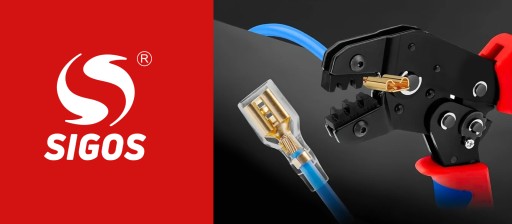 Zestaw marki SIGOS ® - konektorów samochodowych z osłonkami 600 elementów z zaciskarką Praska ręczna z zapadką