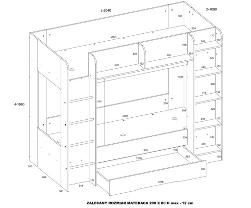 Двухъярусная кровать Craft белого графита, мезонин, спальный контейнер 2x80 см EWRA CR