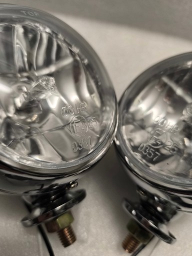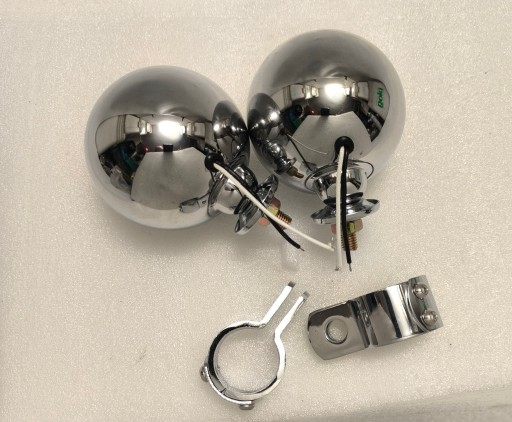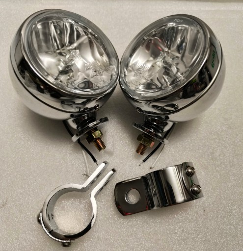 Wysokiej jakości zestaw lampy metalowe chromowane z homologacja i szklanym kloszem.