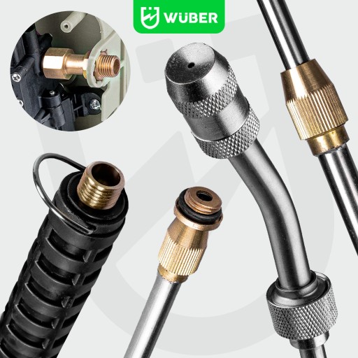 - Obustronne miedziane gwinty dodają trwałości i zapewniają solidne połączenie z lancami oraz innymi akcesoriami opryskiwacza, gwarantując szczelność i niezawodność podczas użytkowania