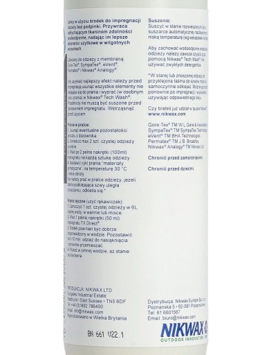 - Nadaje / odnawia właściwości wodoodporne i oddychające kurtek i spodni z membraną - w tym GORE-TEX®;