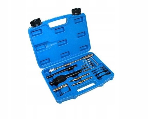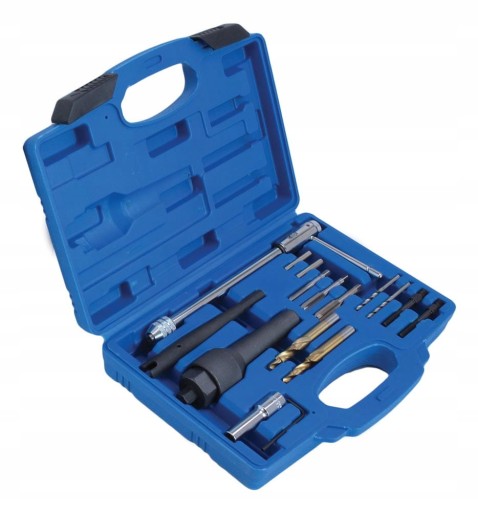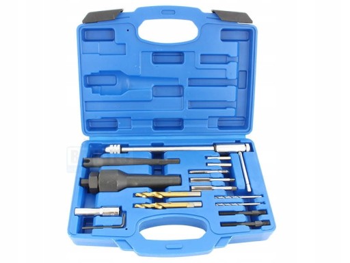 - Zestaw zawiera wszystkie niezbędne adaptery, narzędzia do centrowania i czyszczenia gwintu potrzebne do usunięcia starej lub uszkodzonej świecy żarowej bez uszkodzenia głowicy cylindrów.
