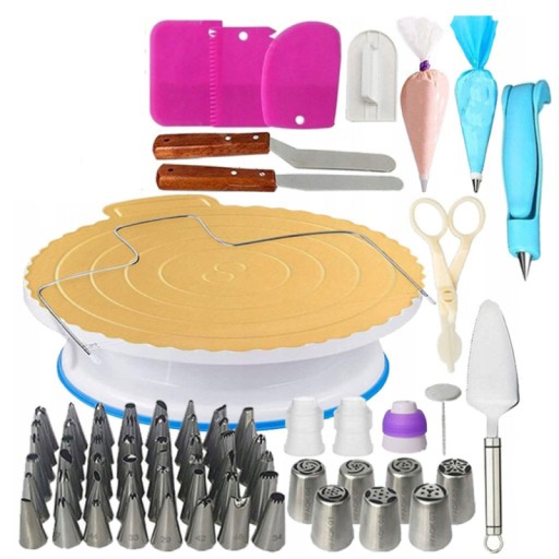 НАБОР ДЛЯ УКРАШЕНИЯ ТОРТА, ВРАЩАЮЩАЯСЯ ТАРЕЛКА, 124 ЭЛЕМЕНТА