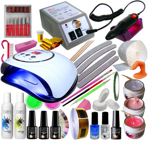 ŻELOWO - HYBRYDOWY MEGA ZESTAW STARTOWY DO PAZNOKCI Z LAMPĄ DUAL LED