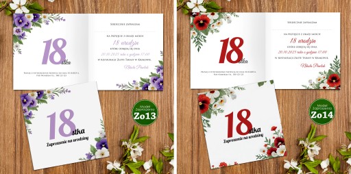 Zaproszenia na 18 urodziny osiemnastkę kwadratowe - z pełną personalizacją + koperta Gratis!