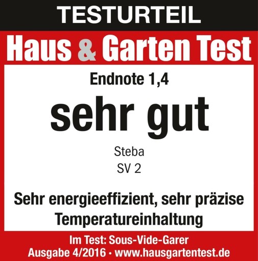 Dane techniczneKolorowa stal nierdzewna/czarnyGwarancja24 miesiąceWaga3,5 kgWymiary (V x S x H)22 x 38 x 25 cmPrąd800 WSous-Vide Steba SV 2Sous-Vide - gotowanie w niskiej temperaturze, podgrzewanie z zachowaniem wszystkich właściwości odżywczych żywności, które pozostają soczyste, ich kolor i aromat jeszcze bardziej intensywne w przygotowaniu. Profesjonalne gotowanie w worku próżniowym w łaźni wodnej. Korpus urządzenia ze stali nierdzewnejTimer10 l pojemnośćumożliwia precyzyjne gotowanie (maks. 0,5 °C różnica)"gotowanie" jest praktycznie niemożliwePrecyzyjna elektroniczna regulacja temperatury, cyrkulacja wody w celu zapewnienia równomiernej temperaturyŻywność pozostaje soczysta, jej kolor i aromat są jeszcze bardziej intensywne w przygotowaniu. Nie dochodzi do wysuszenia, utleniania ani wymywania żywności.Dzięki delikatnej obróbce cieplnej zachowane zostają ważne składniki odżywczeWymiary wewnętrzne (WxSxG): 15 x 30 x 22 cmSteba = wysokiej jakości niemiecka markaDo produktu Steba SV 2 zalecamy zakup kulek izolacyjnych Steba, które oszczędzają energię i udoskonalają temperaturę kąpieli.