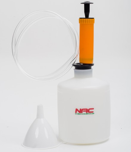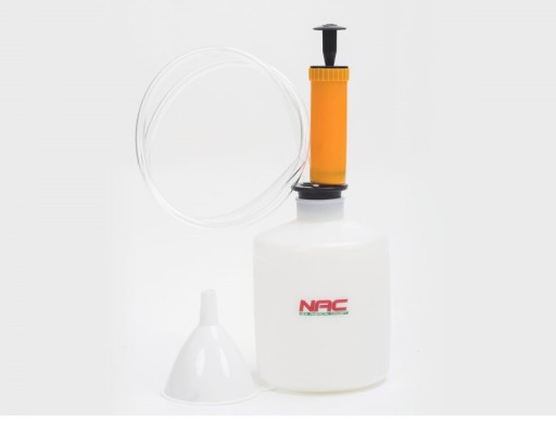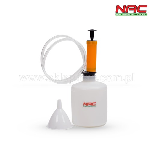 W zestawie znajdziesz pojemne naczynie na zebrany olej, pompkę, która ułatwia jego odsysanie, oraz gumowy wężyk. Lejek pozwala na przelanie substancji bez ryzyka jego wylania.