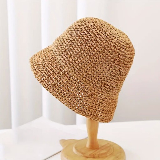 Damski przeciwsłoneczny Kapelusz bucket, w kolorze słomianego brązu.
