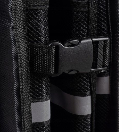 - Posiada on jedna dużą komorę, którą możesz podzielić na trzy mniejsze dzięki przegródkom. Dodatkowo organizer wyposażony został w cztery kieszonki z siatki na przodzie oraz jedną kieszonkę zamykaną na rzep z boku.