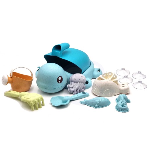 Zestaw do Piasku Żółwik od marki WOOPIE z serii WOOPIE GREEN to świetny dodatek do piaskownicy, a nawet ogrodu. Zestaw zawiera 8 elementów: żółwia, łyżkę, konewkę, 3 foremki, łopatkę i grabki oraz kołowrotek. Wiaderko ma wygodny uchwyt do przenoszenia. Zestaw ma najmodniejszy pastelowy design oraz został wykonany z organicznego biodegradowalnego (podlegającemu samoistnemu rozkładowi) materiału. Dodatkowo podlega kompostowaniu.Produkt bezpieczny dla dzieci - dezynfekowany w 120 stopniach. Gwarancja super zabawy w piaskownicy, na plaży, a nawet w ogrodzie! Produkt przyjazny środowisku!