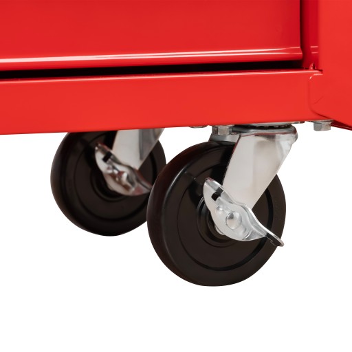 - Mobilność i stabilność: Dwa skrętne kółka z hamulcami ułatwiają manewrowanie i zapewniają bezpieczeństwo, zapobiegając niekontrolowanemu przesuwaniu się szafki.