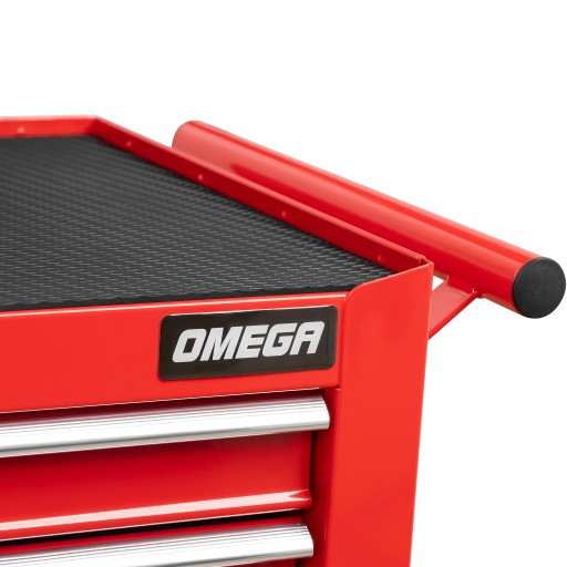 - Porządek i ochrona narzędzi: Szuflady oraz blat wyłożono matą, która zapobiega przesuwaniu się narzędzi oraz chroni je przed uszkodzeniami podczas odkładania.