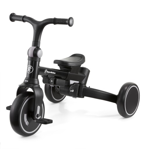 Trójkołowy rowerek można z łatwością dostosować do aktualnych możliwości i potrzeb swojej pociechy. W przypadku najmłodszych, warto obrócić fotelik przodem do rodziców, zamontować zabezpieczający pałąk, daszek, podnóżki oraz drążek, który umożliwia rodzicom napędzanie pojazdu. Gdy maluch podrośnie, podnóżki można złożyć, przymocować pedały, zdemontować pałąk bezpieczeństwa i daszek, a także obrócić siedzisko. Po opanowaniu podstaw jazdy, trójkołowiec można łatwo przekształcić w biegówkę. Wszelkie zmiany nie wymagają użycia narzędzi i są szybkie oraz łatwe do wykonania.