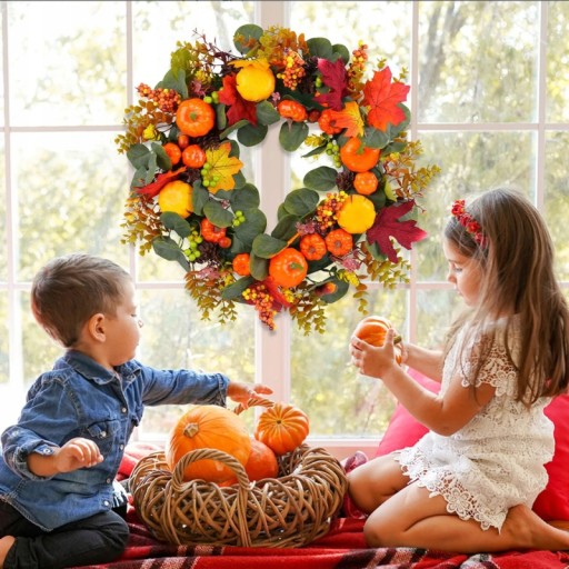 ✔️ Wianek świetnie prezentuje się zarówno na drzwiach wejściowych, jak i wewnątrz domu, np. na ścianie, komodzie czy stole jako element kompozycji. Idealny na jesienne dni, Święto Dziękczynienia, a nawet jako ozdoba na sesję zdjęciową. Kompozycja jest lekka, trwała i bardzo łatwa do zawieszenia.
