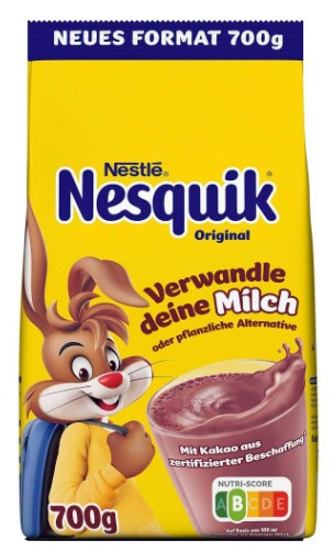 Napój kakaowy Nesquik to doskonały sposób na wprowadzenie mleka do diety Twojego dziecka. Nesquik zmienia mleko w pyszny, odżywczy napój, który stanowi doskonałe uzupełnienie pełnowartościowego śniadania. Pamiętaj, że śniadanie to najważniejszy posiłek dnia! Zadbaj o to, by Twoje dziecko zjadło je przed wyjściem do szkoły.
