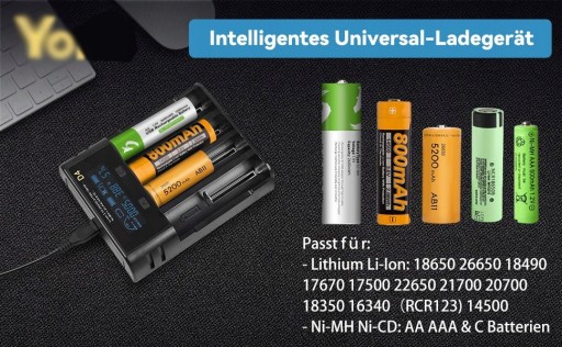 W pełni kompatybilny z większością akumulatorów litowo-jonowych 3,6 V/3,7 V, np. akumulatorami MH/Ni-CD, takimi jak AAA/AAA/AA/SC/C/F6.