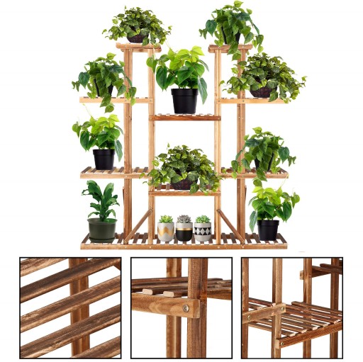 Wielopoziomowy kwietnik od marki Springos, to niezwykle praktyczne i efektowne rozwiązanie, dla miłośników roślin, którzy wciąż szukają nowych pomysłów na wyeksponowanie kwiatów oraz dla tych, którym doskwiera brak miejsca na doniczki. Drewniany stojak, który pomieści nawet 15 donic, pozwoli Ci wypełnić zielenią puste dotąd kąty i maksymalnie wykorzystać przestarzeń, w miejscach takich jak: