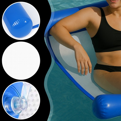 Siateczka w centrum utrzymuje ciało tuż pod taflą wody, zapewniając chłód i odprężenie w pełnym słońcu.