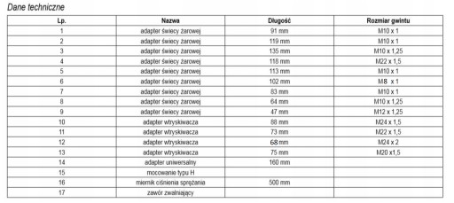 Zestaw wyposażony jest w zestaw końcówek do większości silników wysokoprężnych produkowanych na świecie.