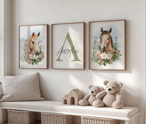 Nasz zestaw plakatów z końmi i personalizacją to doskonały wybór dla małej miłośniczki zwierząt i natury.