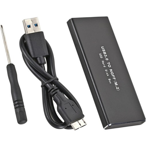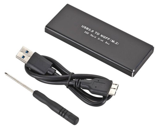 - Adapter dysku SSD umożliwiający podłączenie dysku M.2 do portu USB komputera.
