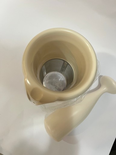 - 1- MADE IN SPAIN. Składa się z 4 sztaplowanych elementów: pojemnika i pokrywki, moździerza i filtra. Stal nierdzewna i tworzywa sztuczne pochodzenia EU & USA certyfikowane.
