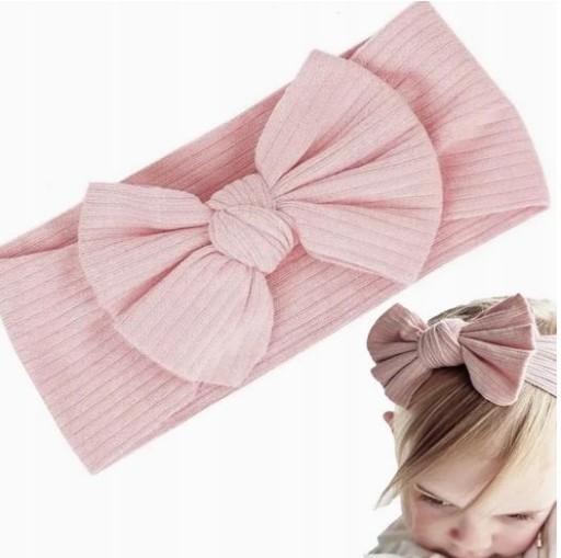 Cudowna prążkowana opaska dla dziewczynki. Opaska dopasowuje się do kształtu główki dziecka. Opaska bez uciskowa, szeroka, idealna na okres jesienno-wiosenny
