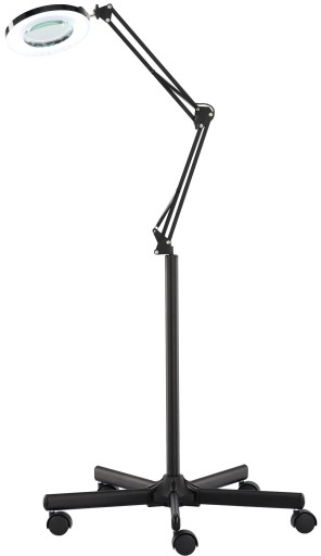 Lampa na stabilnym statywie pięcioramiennym na kółkach.