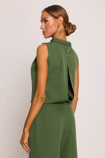 DAMSKI KOMBINEZON KOBIECY ELEGANCKI BEZ RĘKAWÓW LUŹNY LEKKI ZIELONY 40 L