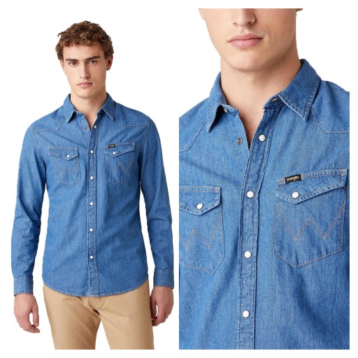 ℹ️ KOSZULA MĘSKA WRANGLER LS WESTERN SHIRT MID STONE W5F25K14V 112130117 L – Parametry i cechy produktu: