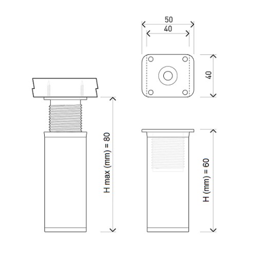 4 x Nóżka BASIC H-6 cm Czarna + Wkręty