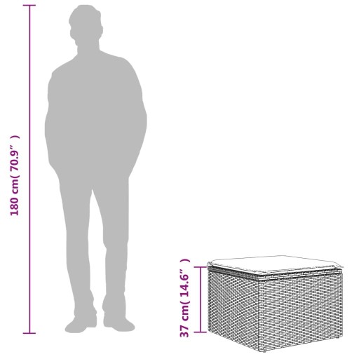 Stołek ogrodowy z poduszką, szary, 55x55x37 cm, polirattan