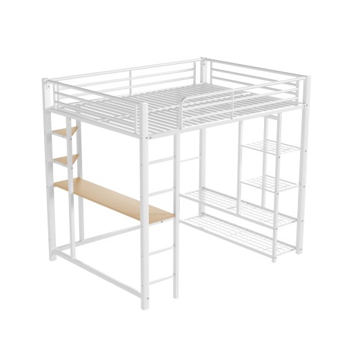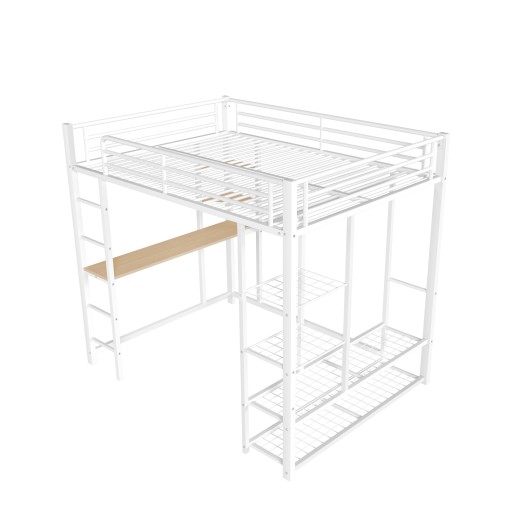 Łóżko piętrowe 90*200 Łóżko pojedyncze dziecięce półką stołową Białe żelazo