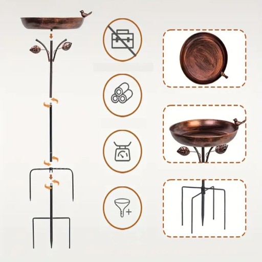 ✔️ Ta metalowa kąpiel dla ptaków to nie tylko praktyczne miejsce do picia i kąpieli dla skrzydlatych gości, ale także elegancki dodatek do każdego ogrodu, tarasu lub podwórka.