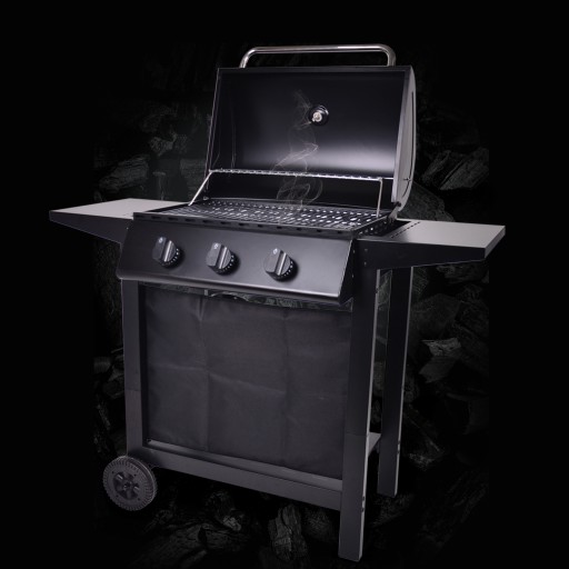Elegancka bryła ze stali malowanej proszkowo, masywna pokrywa i wyraziste pokrętła sprawiają, że grill prezentuje się profesjonalnie na tarasie czy w ogrodzie. Konstrukcja wózka kryje butlę gazową i porządkuje akcesoria, dzięki czemu cała strefa BBQ wygląda schludnie i nowocześnie.