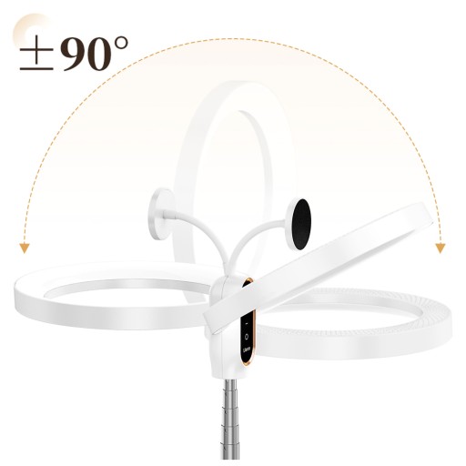 ✔️ Pochylanie RINGU LED o ±90° daje możliwość precyzyjnego ustawienia kąta oświetlenia, co pozwala na łatwe dopasowanie do różnych typów ujęć, takich jak portrety czy zdjęcia z góry.