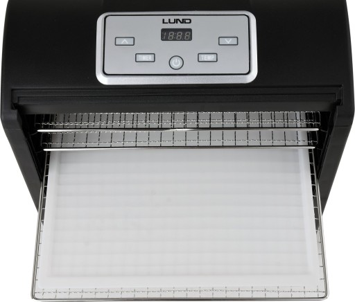 Obsługa urządzenia suszącego marki LUND odbywa się z poziomu niezwykle intuicyjnego cyfrowego panelu sterowania. To właśnie za jego pomocą można ustawiać preferowaną temperaturę (zakres od 35°C do 70°C; co 5°C) oraz czas pracy (od 30 min do 19,5 h; co 30 min). Po jego upłynięciu wbudowana funkcja timera samoistnie wyłączy urządzenie. Dzięki temu zawsze możesz dostosować ustawienia dehydratora pod własne potrzeby, jednocześnie nie obawiając się, że Twoje produkty ulegną zbyt dużemu przesuszeniu.