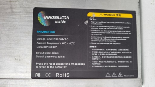 BITCOIN CRYPTOCURRENCY DIGGER INNOSILICON T2TH 30T ХОРОШЕЕ СОСТОЯНИЕ WARR.