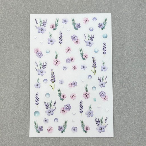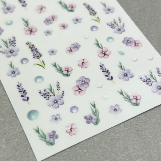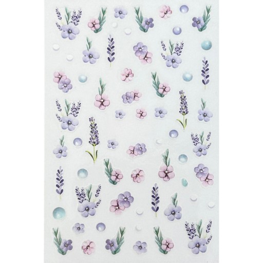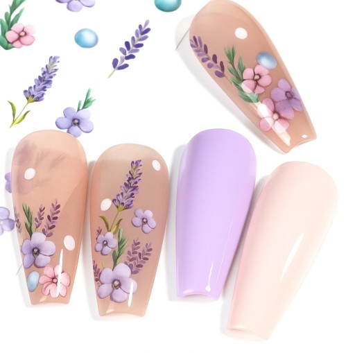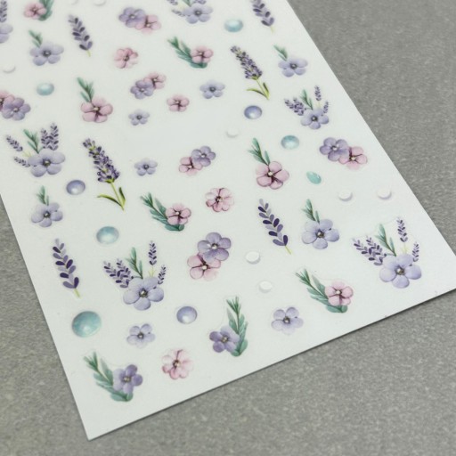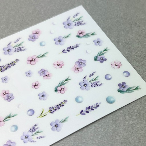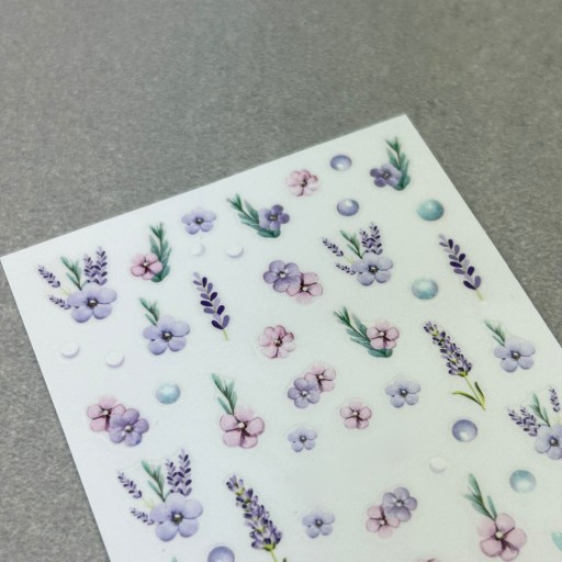 ✔️ Wiosenne naklejki na paznokcie. Fioletowe kwiaty, lawenda i pastelowe dodatki. Idealne do tworzenia uroczych, kobiecych stylizacji.