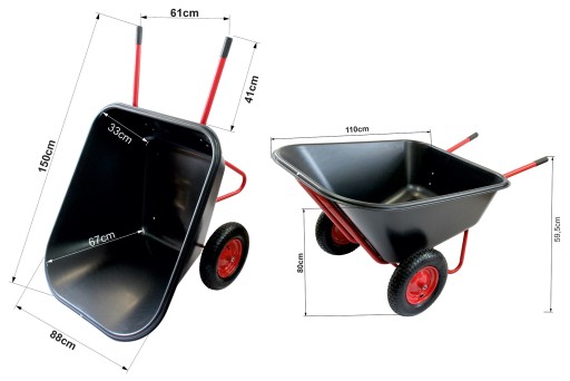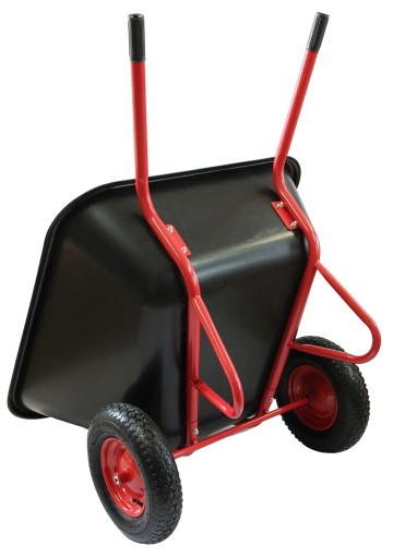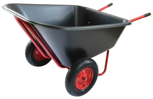 Taczka do przewożenia ładunków, z największą misą na rynku o pojemności zasypowej 300L. Dzięki tak dużej misie można nią przewozić duże ilości ładunku (piasku, paszy, ziemi, kruszywa).