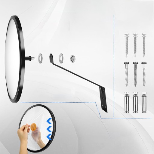 tylna część zewnętrznego lustra drogowego jest wyposażona w obrotowy przegub kulowy, który umożliwia regulację żądanego kąta. Dzięki wytrzymałemu metalowemu mocowaniu ściennemu to lustro drogowe może przetrwać nawet najsilniejsze wiatry bez osłabiania lub utraty ustawionego kąta widzenia.