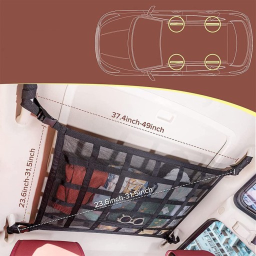 Oszczędność miejsca, duża pojemność? Ulepszona wersja siatkowej torby do przechowywania samochodu SUV. Koce dziecięce, zabawki dla dzieci, ręczniki papierowe i inne lekkie przedmioty można przechowywać w siatkowej torbie do przechowywania koców SUV. Ta konstrukcja może pomóc pomieścić wiele przedmiotów o nieregularnych kształtach. Przezroczysta konstrukcja siatki ułatwia znalezienie przedmiotów.
