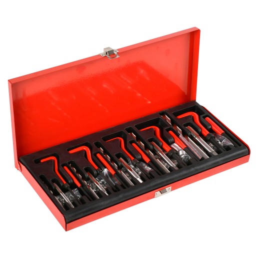 - Wszechstronność: Zestaw zawiera narzędzia do naprawy najpopularniejszych gwintów o różnych rozmiarach, od M5 do M12