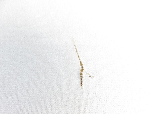 - POSIADA USZKODZENIA MATERIALU WIDOCZNE NA ZDJECIACH