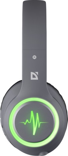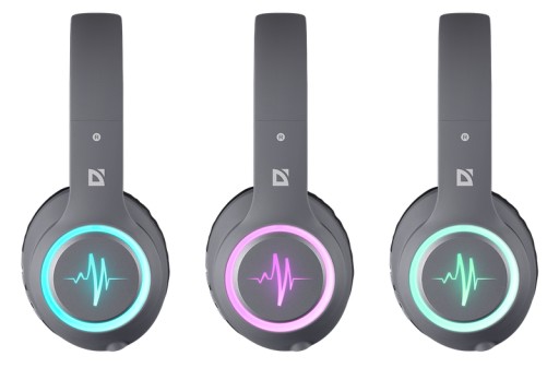 Obudowa słuchawek jest wykonana z szarego, gładkiego i matowego tworzywa sztucznego, ze zmieniającym kolory podświetleniem po bokach.