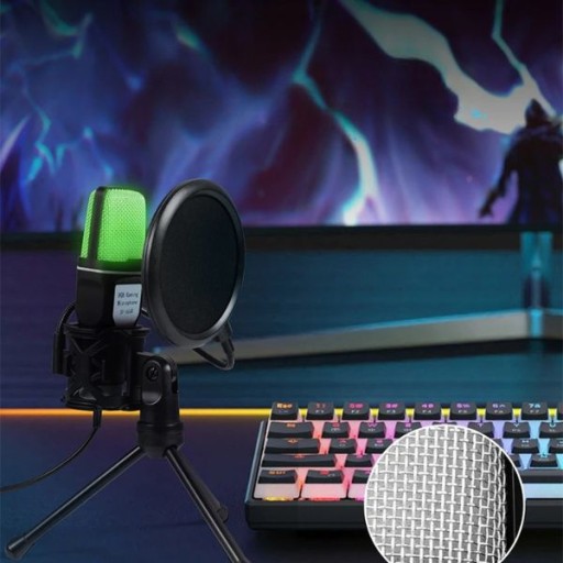 Mikrofon pojemnościowy USB do komputera PC Led RGB Filtr pop