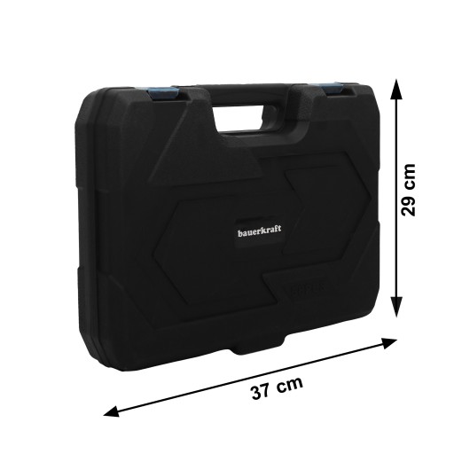 Walizka wyposażona jest w wygodny uchwyt, ułatwiający przenoszenie, a także posiada wyżłobienia na każdy element, dzięki czemu wszystkie narzędzia będą na swoim miejscu, ułatwiając porządek. Mocne zatrzaski dokładnie zamykają walizkę gwarantując bezpieczny transport narzędzi.