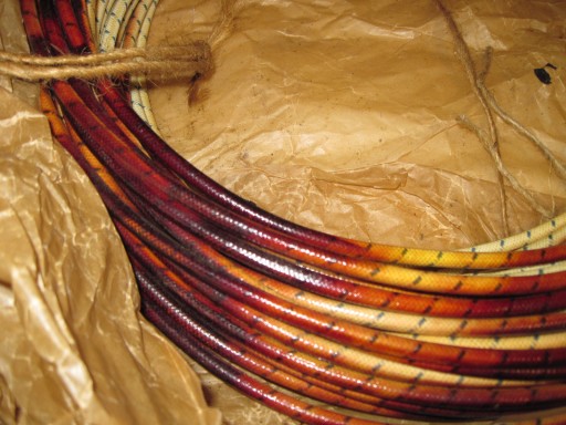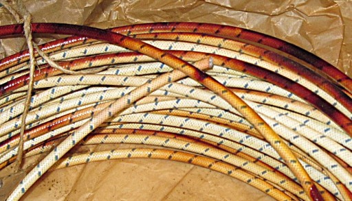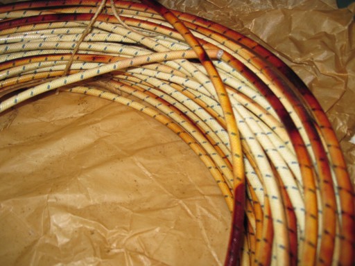 nowy przewód w oplocie bawełnianym , przebarwienia znikną po nagrzaniu silnika i docelowo kolor jak na foto z silnikiem, przewód pasuje na wszystkie fajki z moich aukcji ,podana cena za 1 metr przewodu