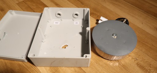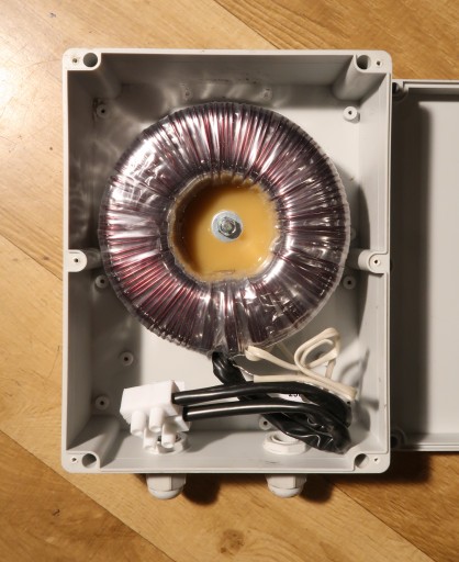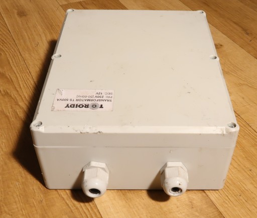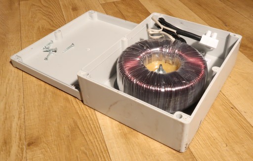 Transformator toroidalny TOROIDY TS 500VA 230V 12V + obudowa. Zdjęcia przedstawiają sprzedawany komplet (obudowa ma wyłamane mocowanie transformatora).