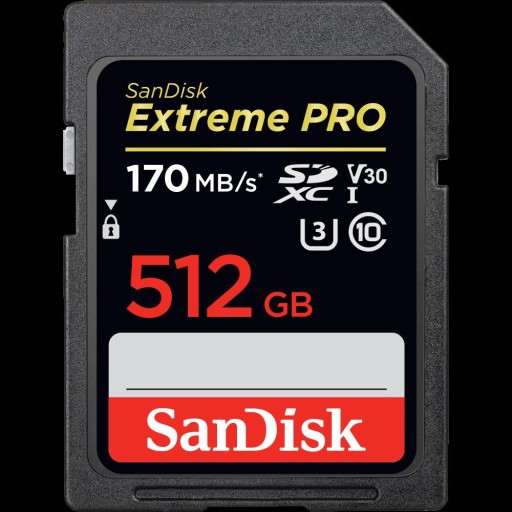 - nazwa przedmiotu: SanDisk Extreme PRO 512 GB SDXC-Speicherkarte mit bis zu 170 MB/s, UHS-1, Klasse 10, U3, V30